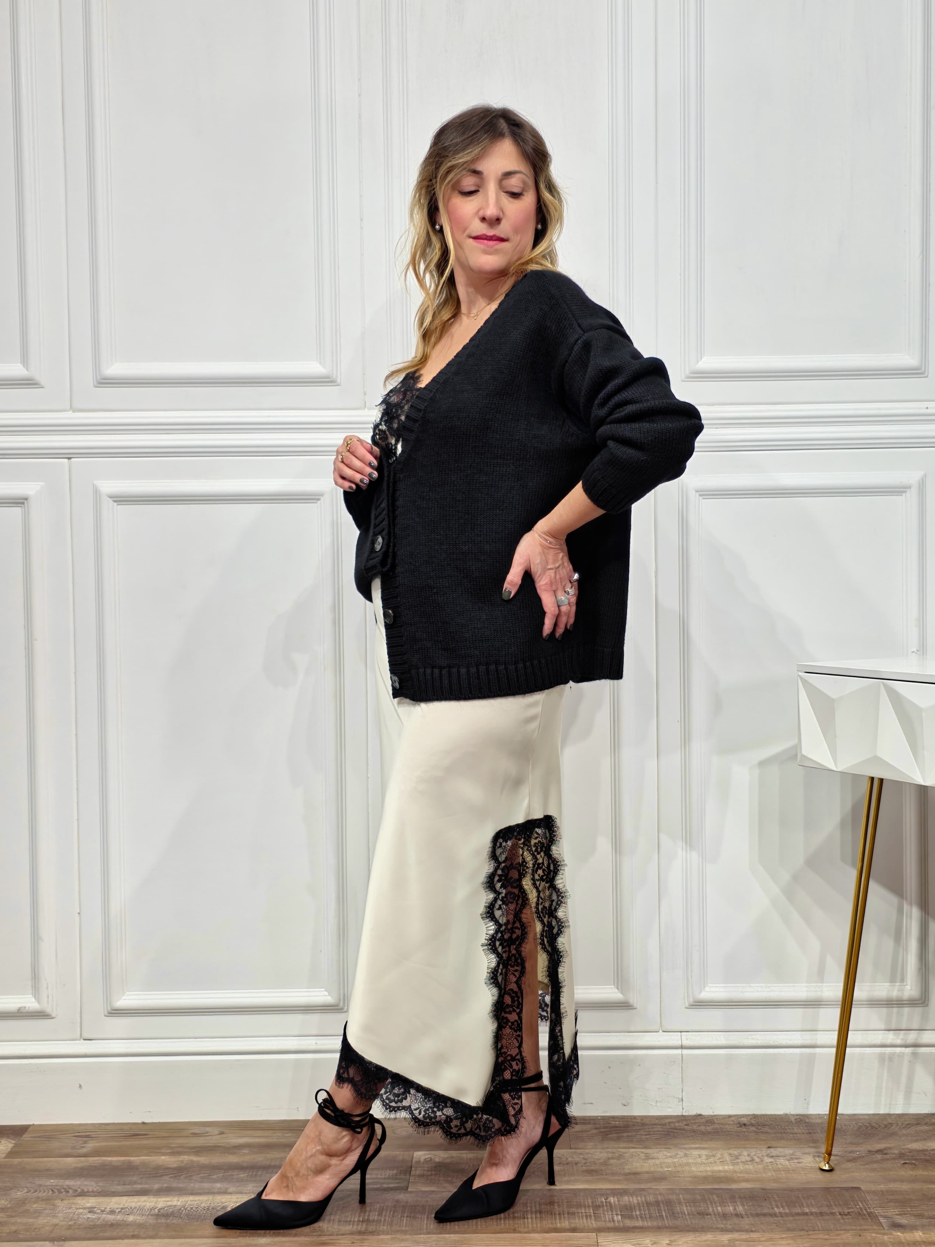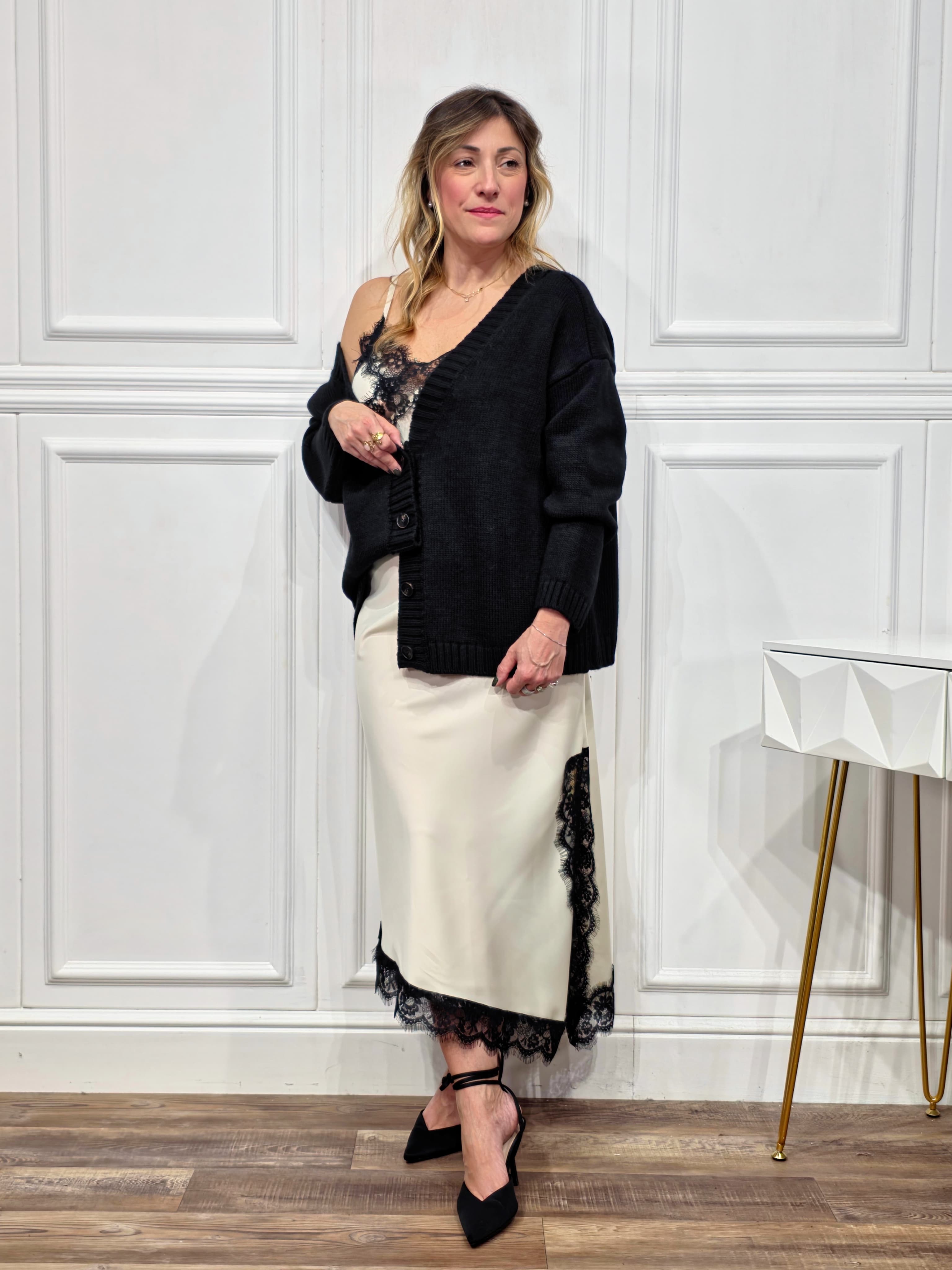 Consigli di stile: indossalo con un cardigan morbido e stivali texani per il giorno, oppure con un blazer strutturato e décolleté per la sera. Perfetto anche con accessori gold per esaltare l’eleganza del nero.