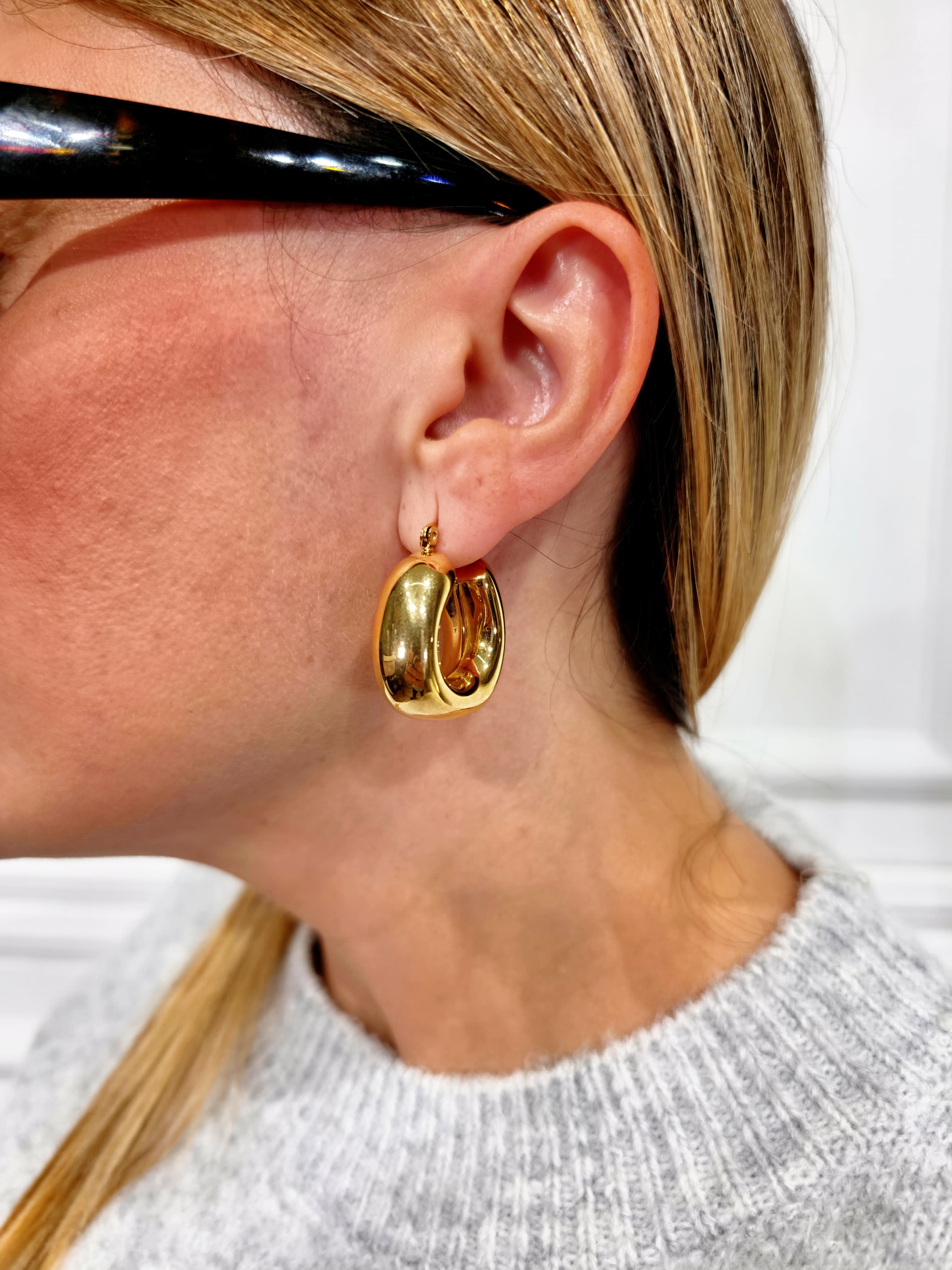 Orecchini a cerchio dalla forma bombata in metallo color oro, dal design minimal e deciso. Perfetti per completare con carattere sia look eleganti che casual.