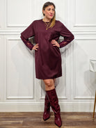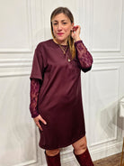 Maxi abito paricollo con manica in pizzo e taschino frontale