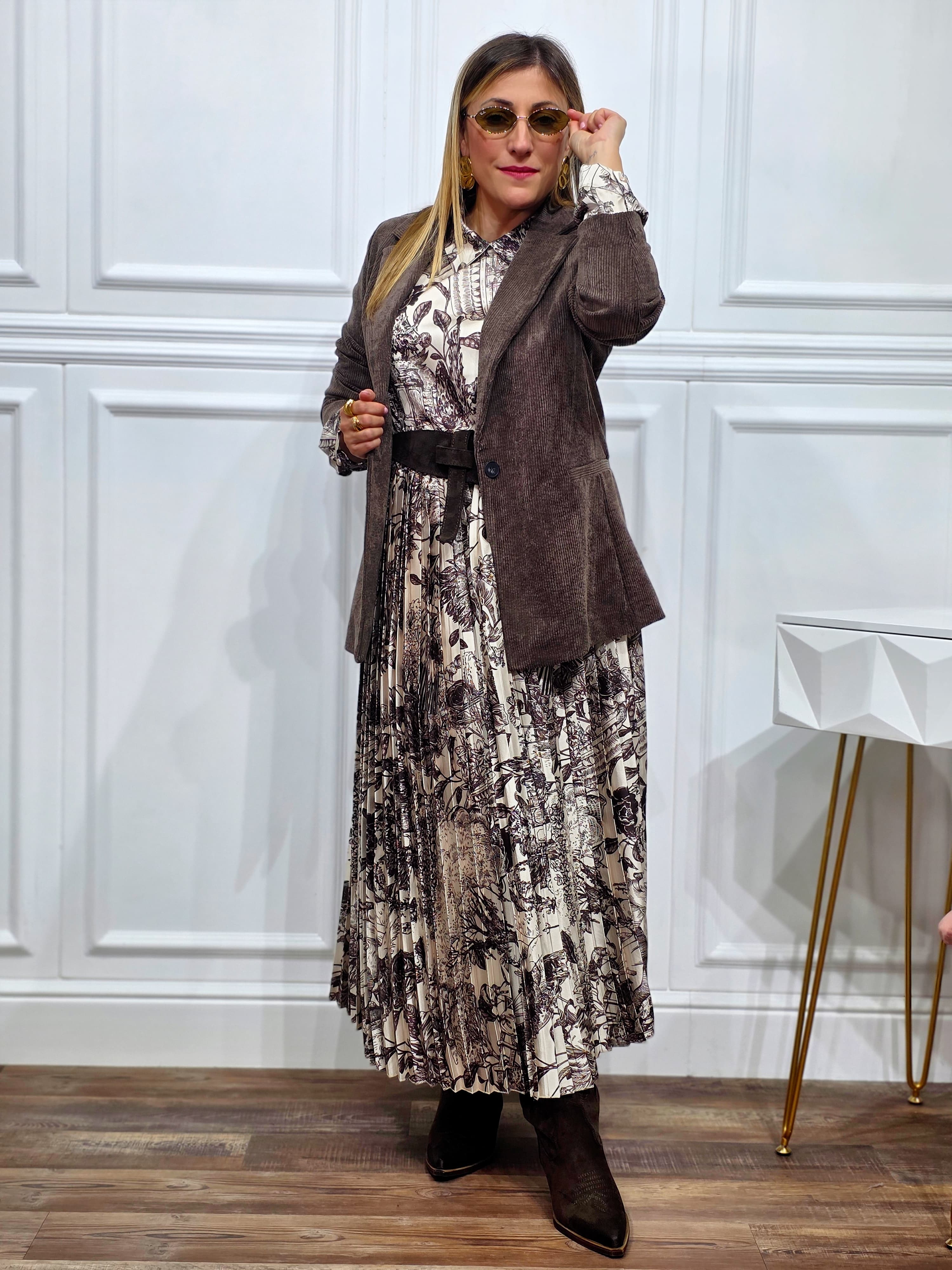 Blazer monopetto in velluto di cotone con coste sottili, dal taglio leggermente strutturato ma confortevole. Linea dritta, rever classico e chiusura a bottone singolo.