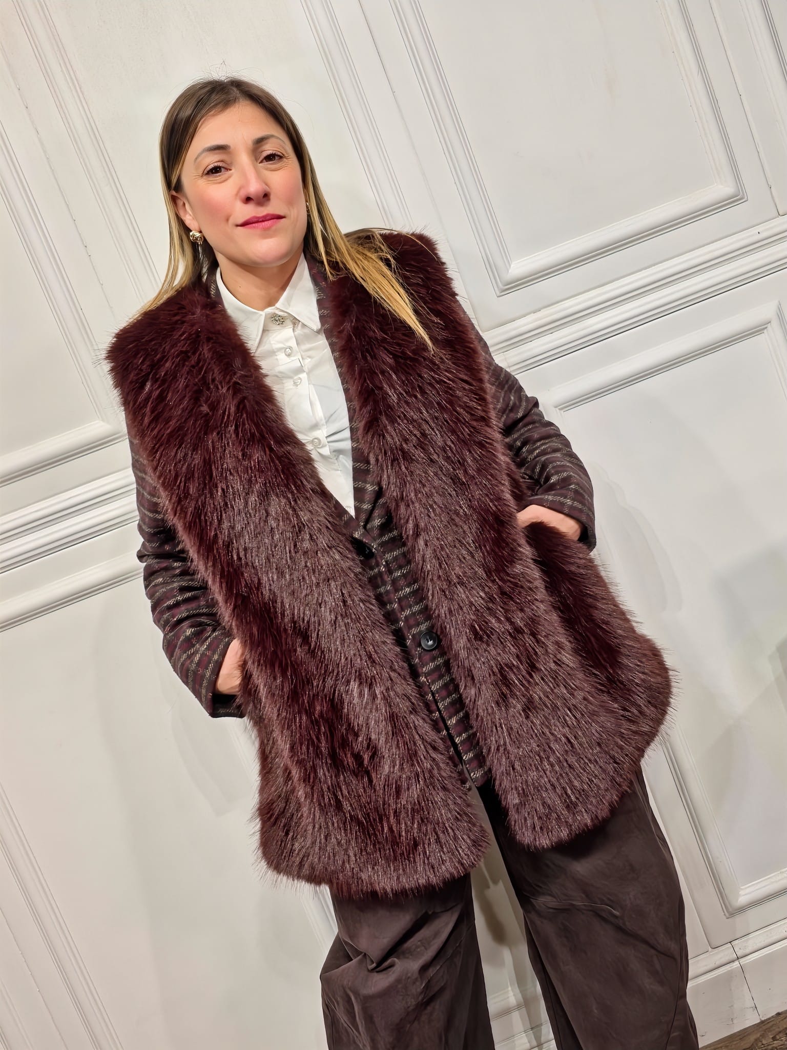 Un capo caldo, avvolgente e super glam, ideale per completare look casual o eleganti con un tocco ricercato. Il gilet è realizzato in ecopelliccia morbida e voluminosa, con vestibilità oversize e lunghezza che slancia la figura. Perfetto da indossare sopra camicie, maglioni o giacche leggere per aggiungere immediatamente stile e personalità.