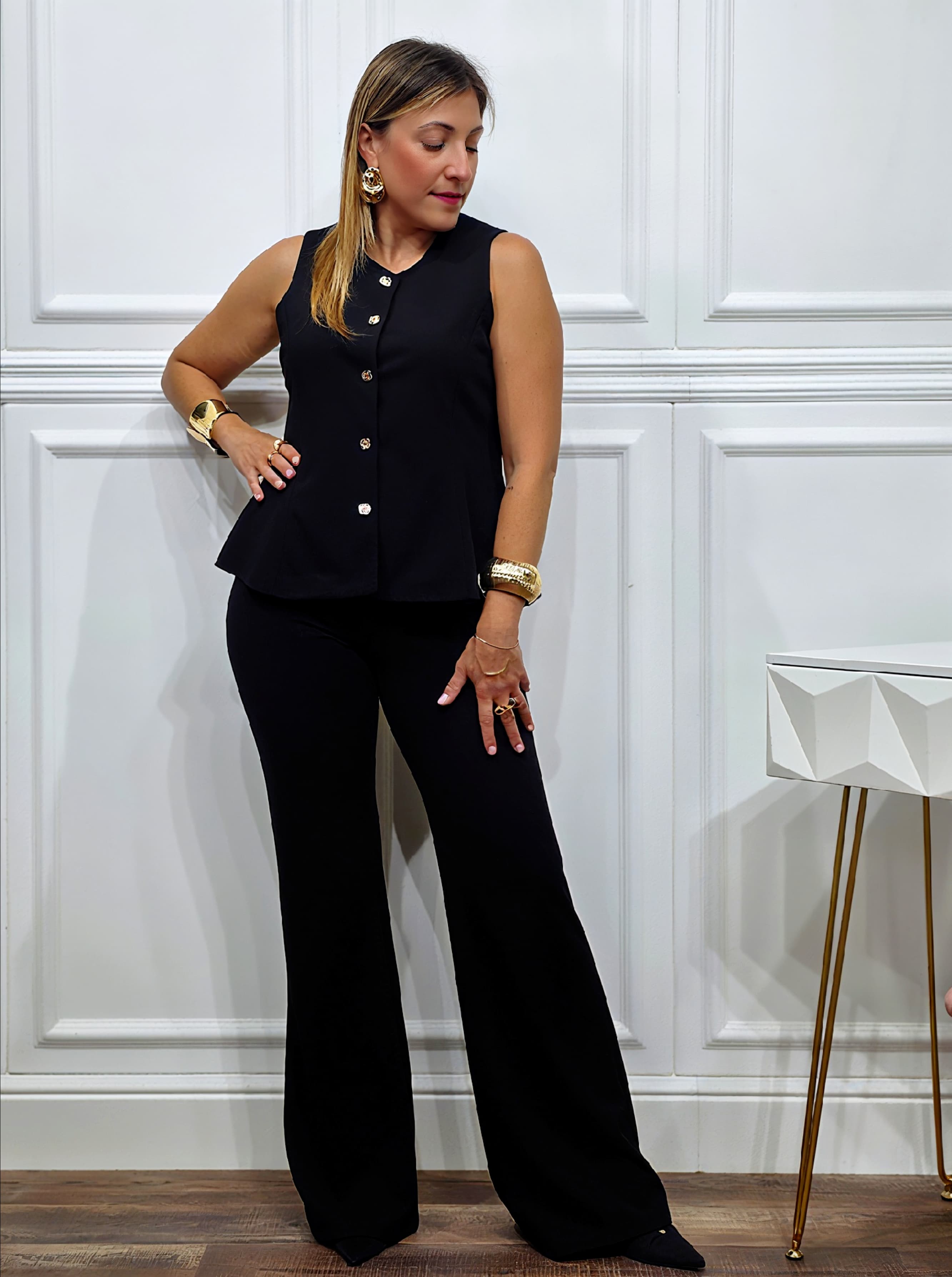 Perfetto da abbinare con top, gilet o blazer per un look completo dal gusto contemporaneo.