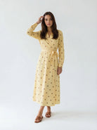 Abito Alba a pois con chiusura kimono – giallo