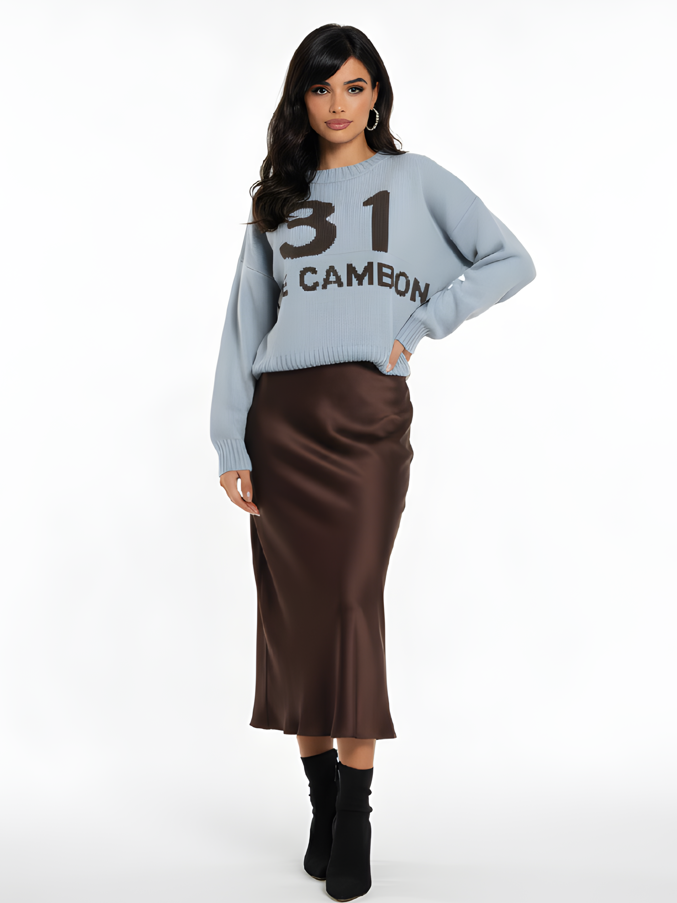 Pull paricollo dal design moderno con scritta a contrasto frontale.