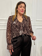 Un capo femminile e raffinato, perfetto per dare carattere ai tuoi look. La camicia è realizzata in tessuto leggero e presenta rouches sul davanti e sui polsini, che donano movimento e romanticismo. Le maniche sono morbide e leggermente trasparenti, per un tocco elegante e sofisticato.