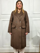 Cappotto oversize in misto lana con linea morbida, doppiopetto con bottoni, tasche frontali e spacco sul retro per garantire comodità nei movimenti. Un capo caldo e raffinato, perfetto per affrontare la stagione con stile.
