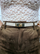 La Cintura Laila è un accessorio versatile e raffinato, ideale per completare diversi outfit. Realizzata in pelle, presenta una fibbia dorata che aggiunge un tocco di eleganza.