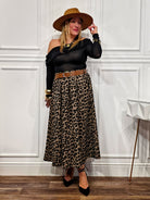 Gonna con stampa maculata, elastico sul retro e tasche a filo. La linea ampia e fluida valorizza la silhouette e dona movimento ad ogni passo.