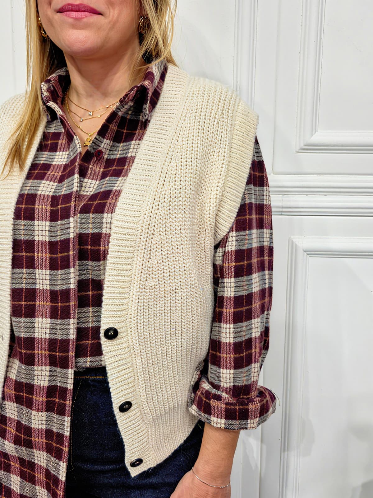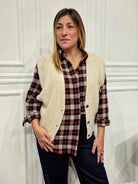 Consigli di stile: perfetto sopra camicie check o bianche per un look casual chic, oppure su un abito leggero per aggiungere un tocco caldo e moderno.