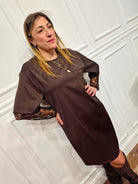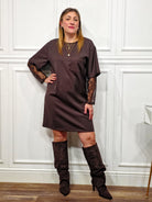 Maxi abito paricollo con manica in pizzo e taschino frontale