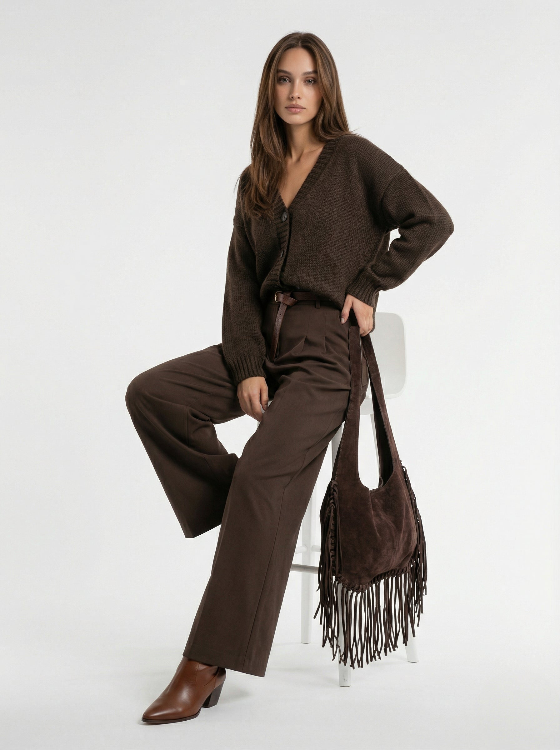 Frida – Cardigan caldo in lana doppio scollo Marrone