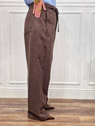 Pantalone in cotone modello baggie, a vita alta con gamba ampia e cintura in tessuto coordinata. Pratico e versatile, dona comfort senza rinunciare allo stile.