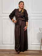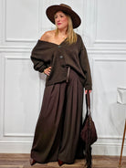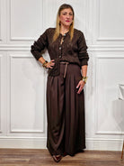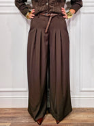 Pantalone ampio modello palazzo con pences frontali e tasche a filo, confortevole e versatile per look sia casual che eleganti.
