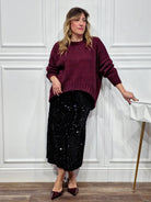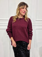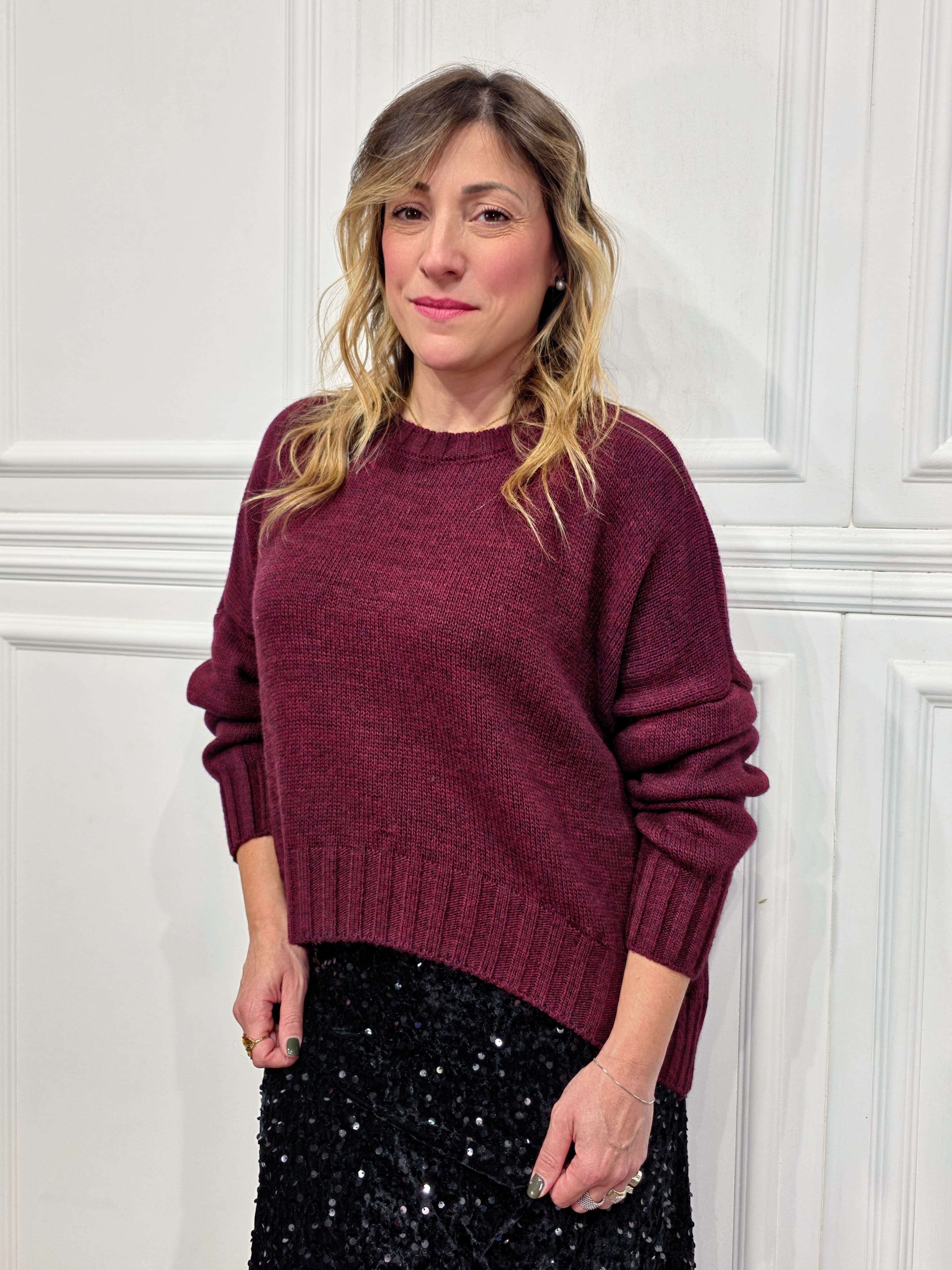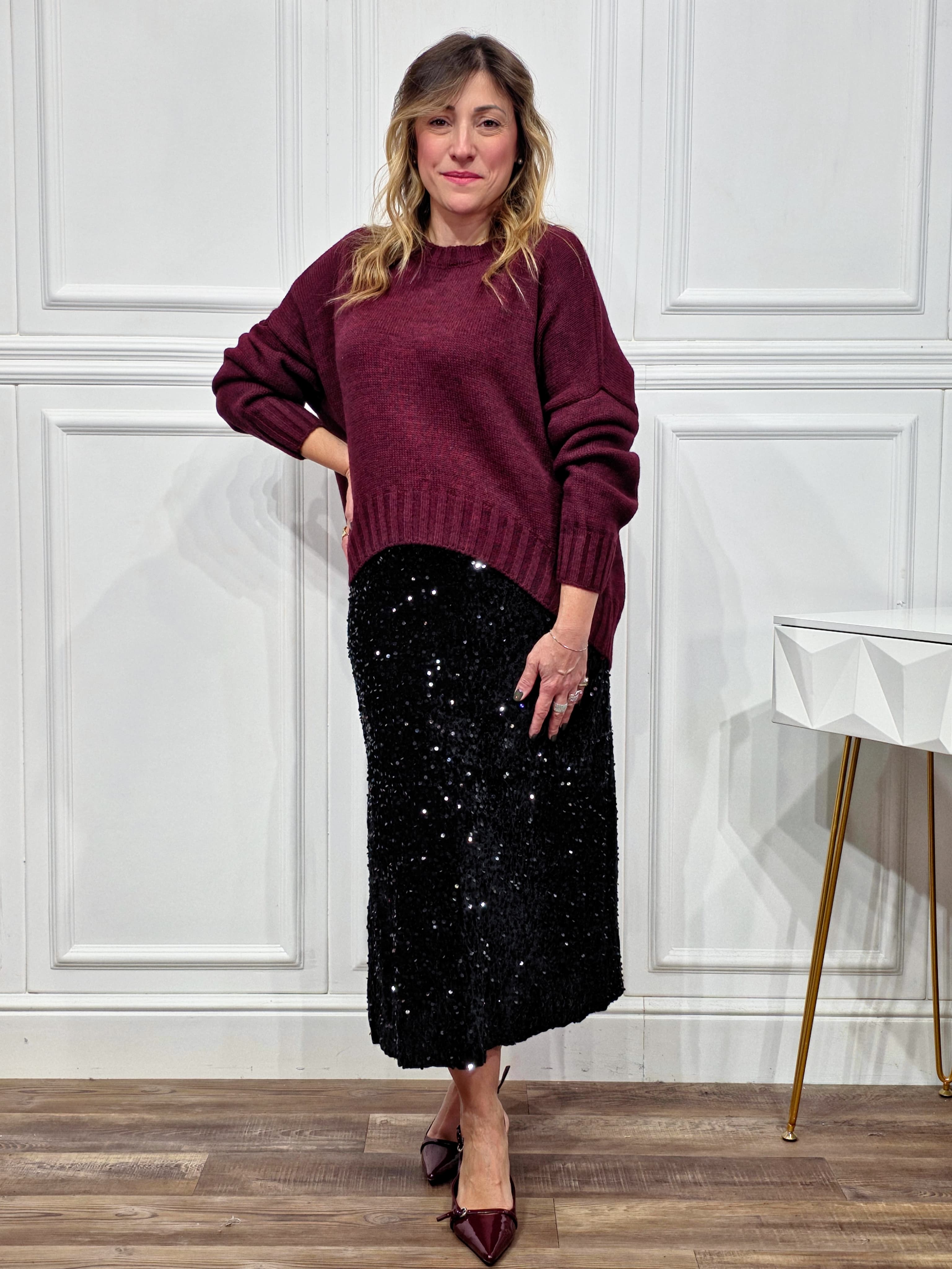 Un maglione morbido e versatile, perfetto per creare look quotidiani moderni e ricercati. Il modello presenta un taglio asimmetrico sul fondo, un collo paricollo minimale e maniche lunghe con polsino a costine. La vestibilità comoda lo rende ideale sia per outfit casual che per abbinamenti più eleganti, come gonne in paillettes o pantaloni sartoriali.